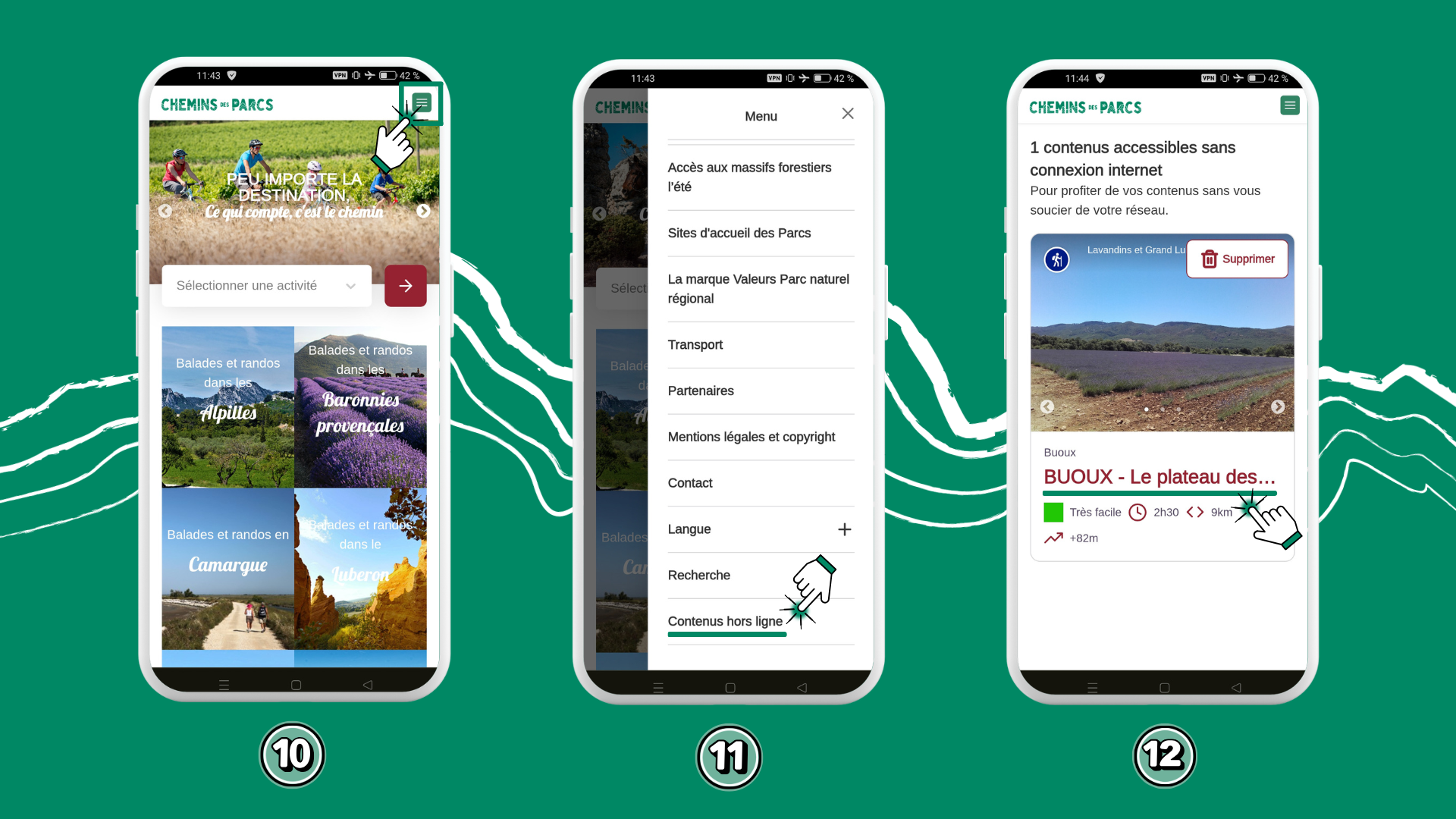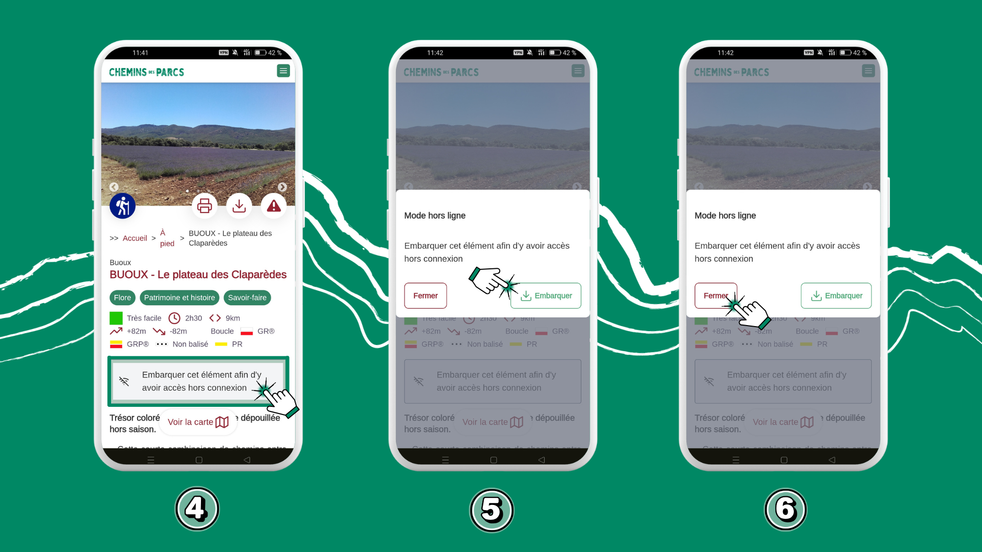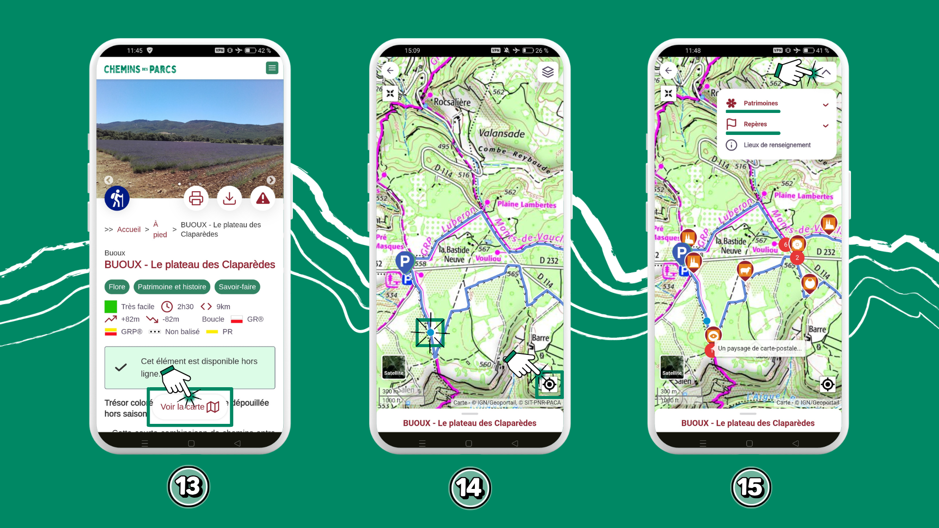 Pour randonner même sans réseau dans les 9 Parcs naturels régionaux de la région Sud, j’emporte mes itinéraires avec moi grâce au mode embarqué de Chemins des Parcs.