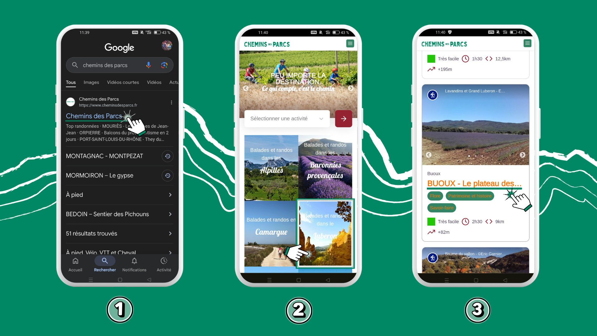 1. J’ouvre le navigateur de mon téléphone et je vais sur cheminsdesparcs.fr