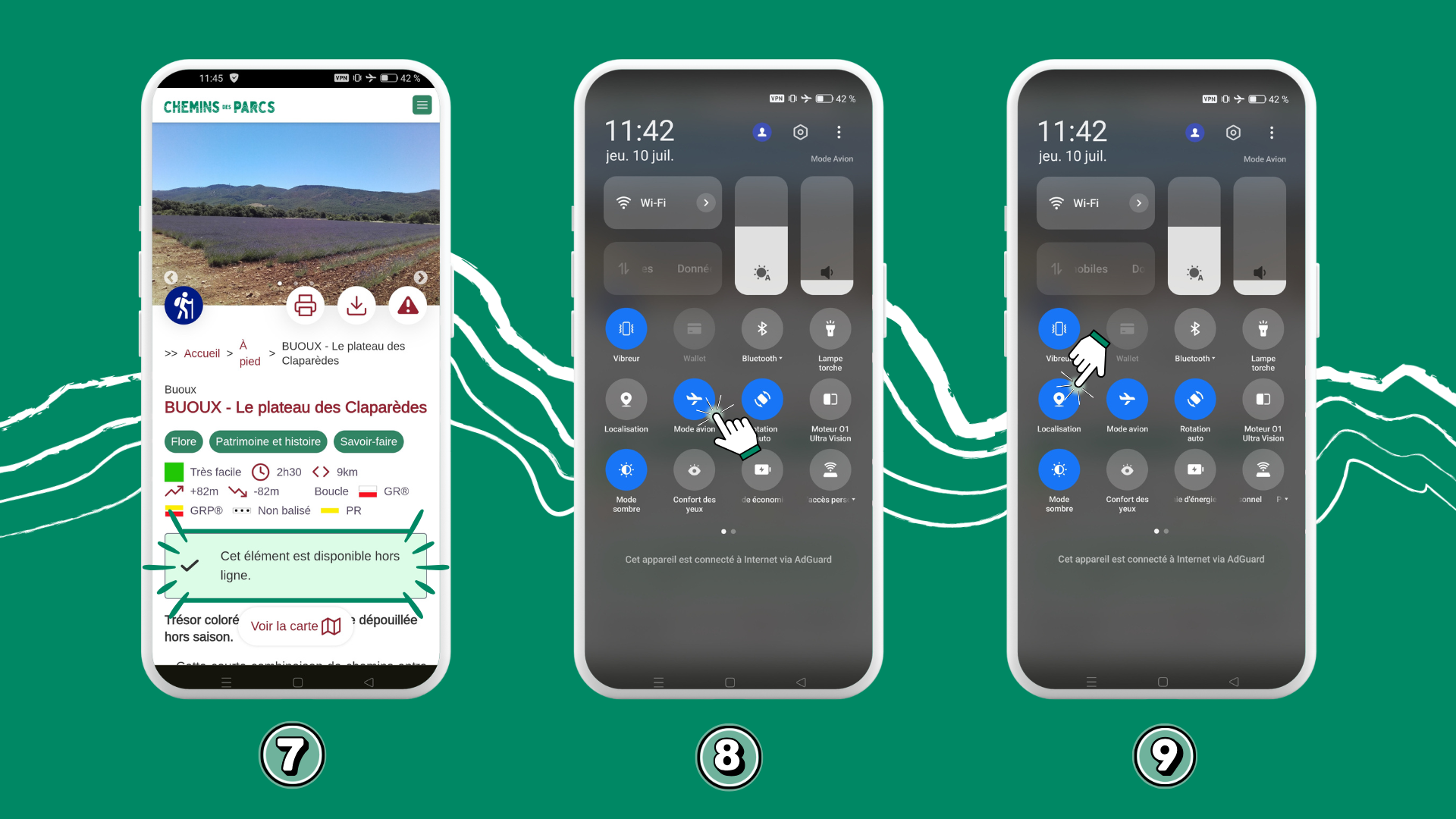 8. Une fois sur le terrain, je mets mon téléphone en mode avion.