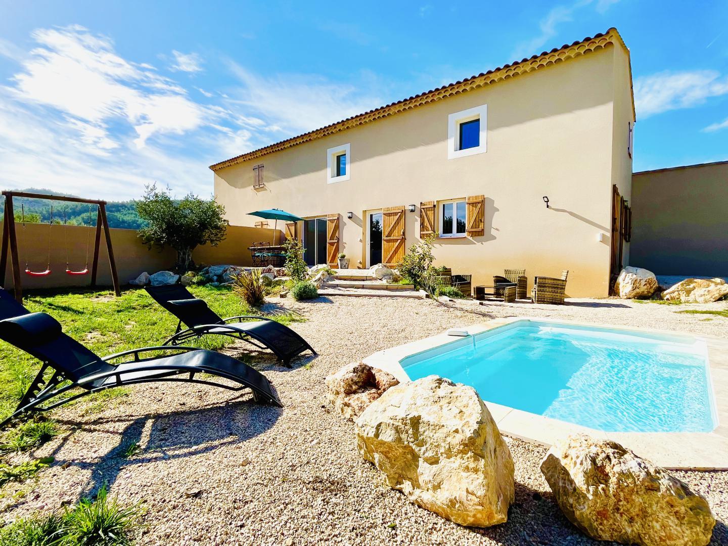 En pleine campagne, à 1.5 km du centre village, entre Sainte Baume et Calanques (Cassis est à 20 km), très belle maison mitoyenne à un autre gîte mais sans vis-à-vis, avec piscine privative (4x2.5, profondeur 1.30, ouverte de mai à septembre), sécurisée (alarme), nettoyée 1fois/semaine et terrain de 400 m² avec parking.